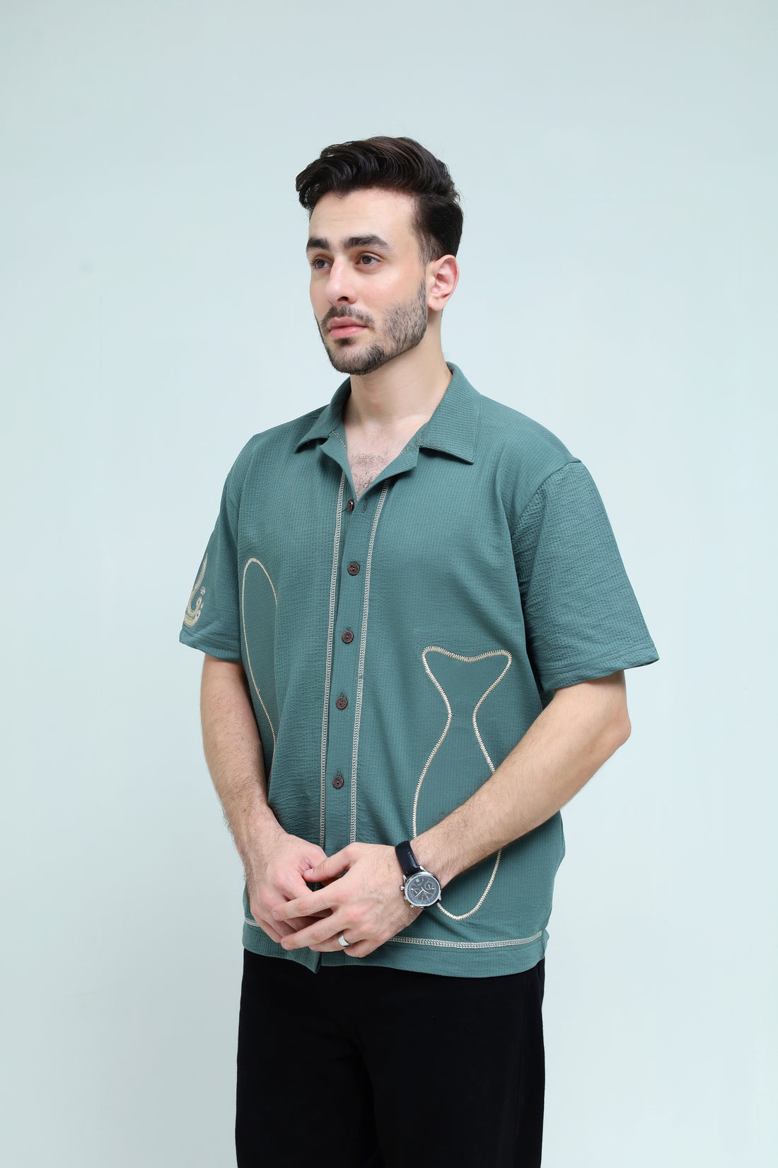 Body: Elevate your everyday style with our unique grained jacquard button-down shirt. This half-sleeve shirt...